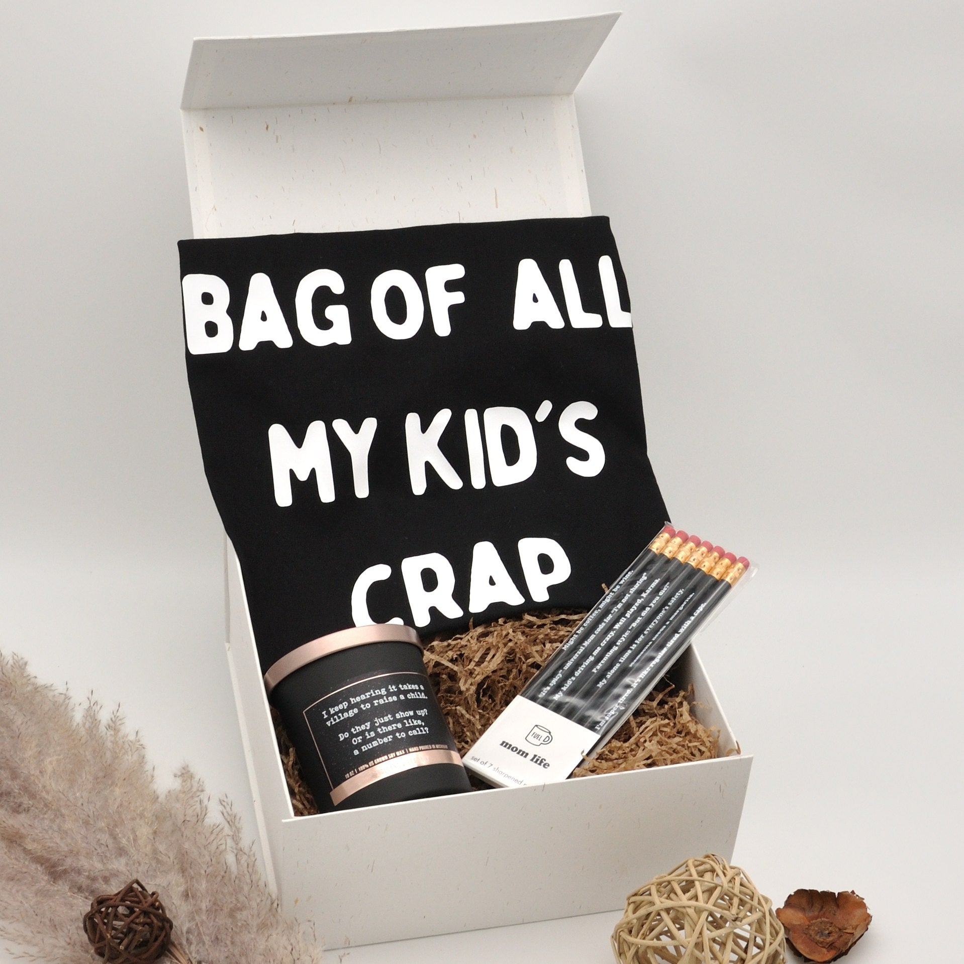 - Pencil set momlife : Set of 7 sharpened #2 pencils, each with its own humorous inscription.