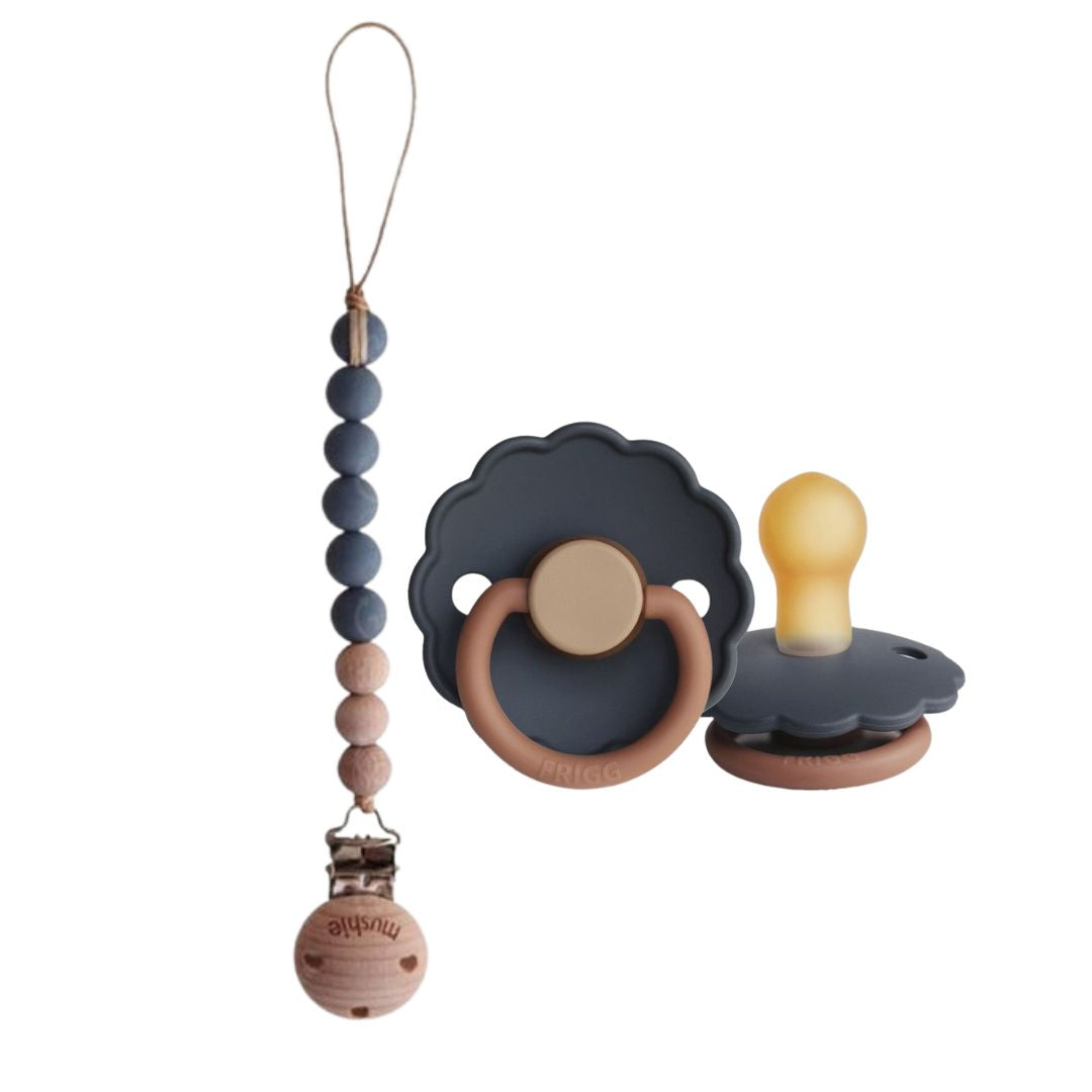 - Frigg Rope Pacifier: This beautiful looking pacifier from the Danish brand Frigg is made of 100% natural rubber. It is designed for babies from 0-6 months and offers comfort and safety.