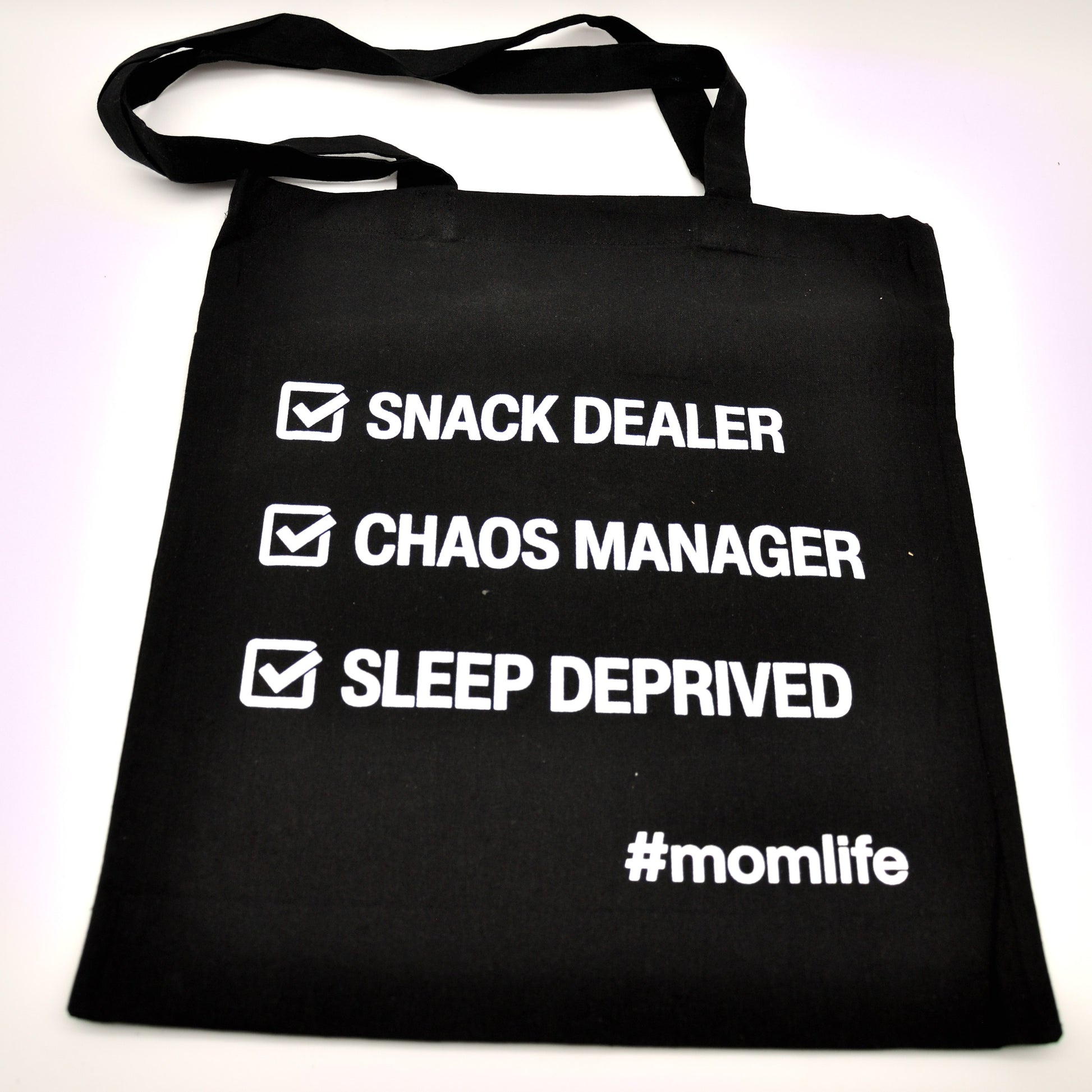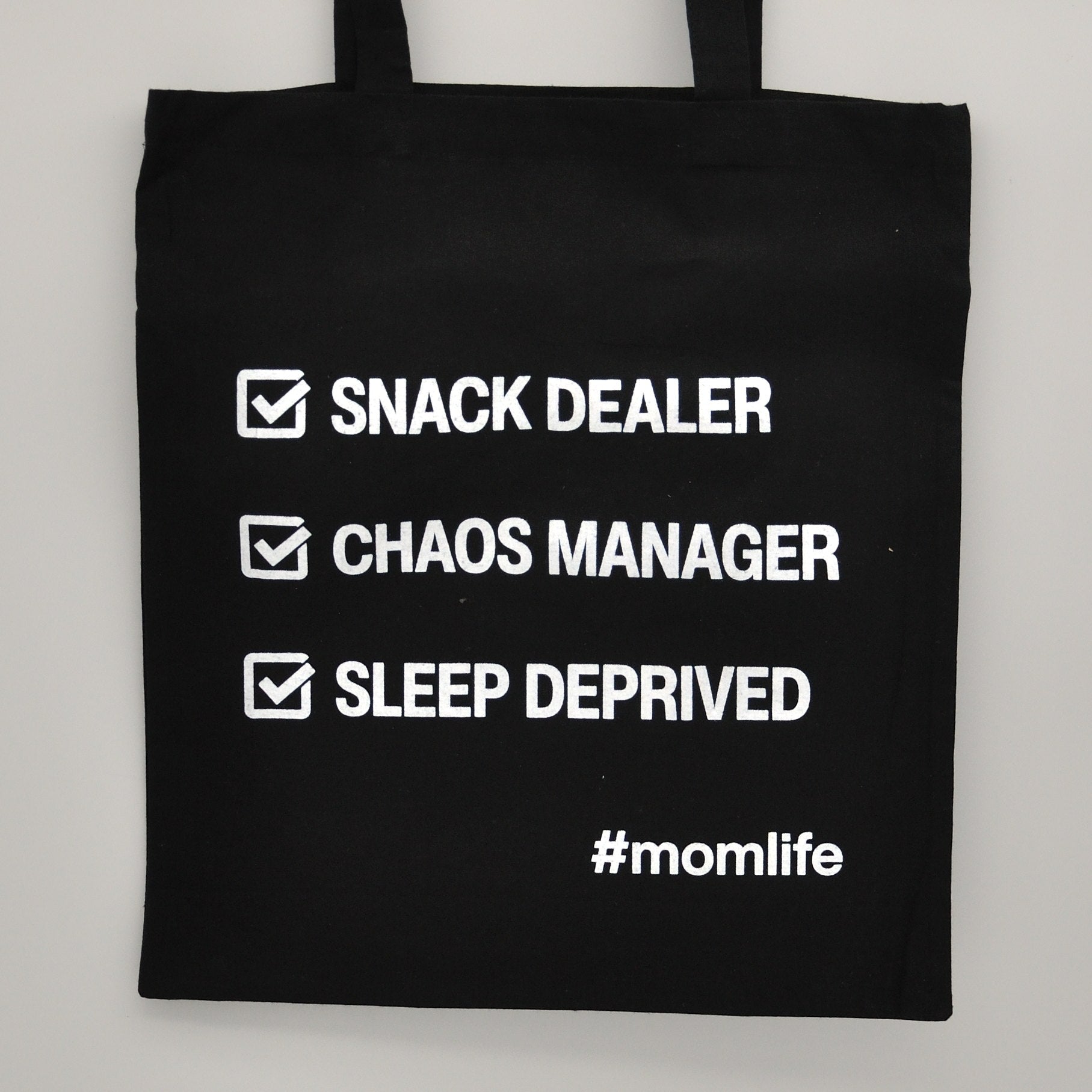 Say it with style and a wink! Our black cotton tote bag is the perfect accessory for every busy mom. With the playful print ‘Snack Dealer’, ‘Chaos Manager’, ‘Sleep Deprived’ and the recognizable #momlife, you show that you rock motherhood with a good dose of humor and flair.