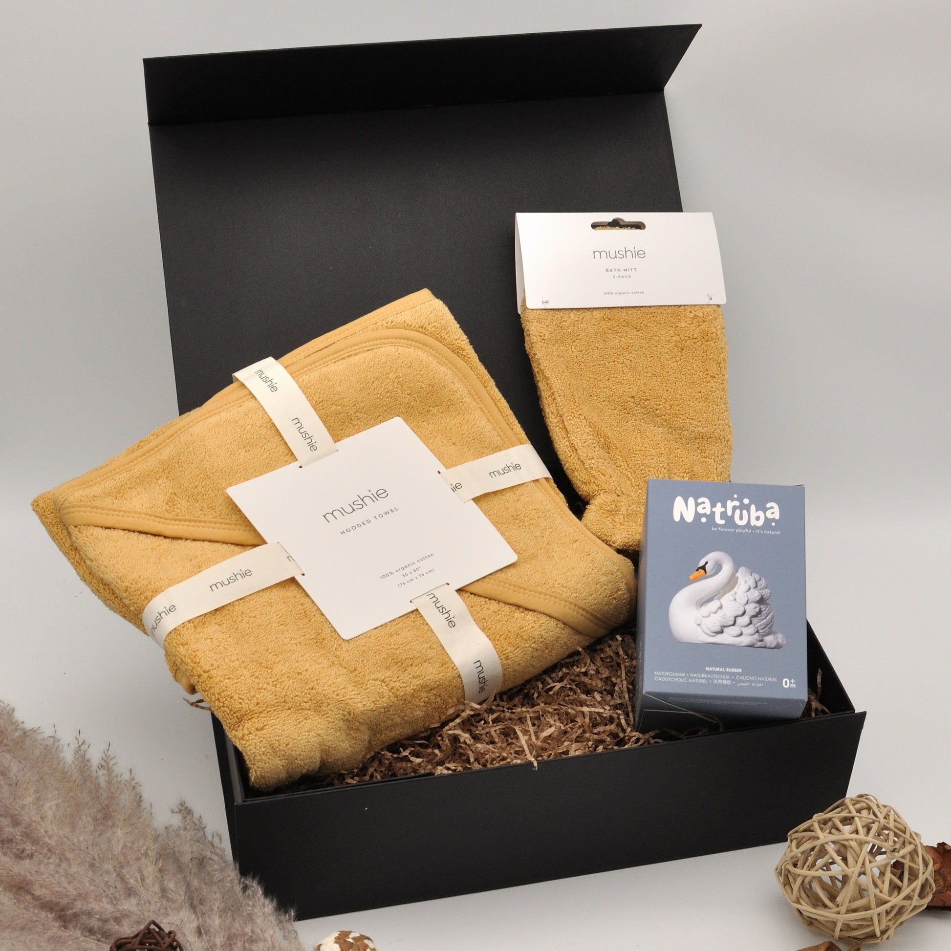- Serviette à capuche Mushie: Fabriquée en coton 100 % biologique, cette serviette à capuche de Mushie est douce pour les peaux sensibles et parfaite pour les câlins après le bain. Le tissu est absorbant et durable et reste doux lavage après lavage. Fabriquée en 100 % coton biologique.