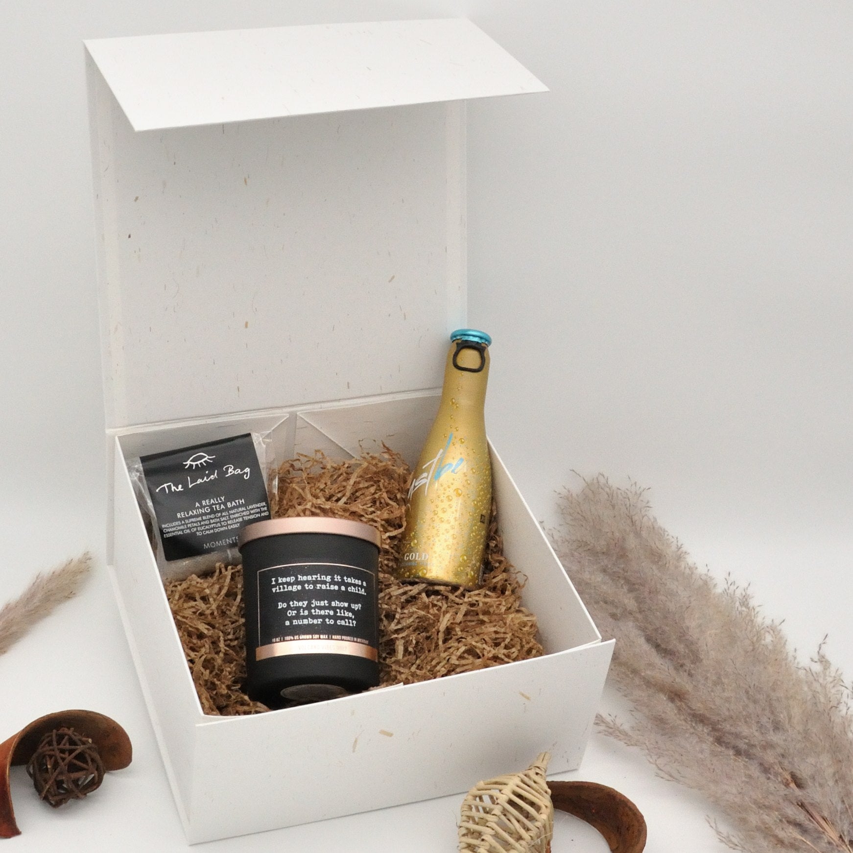 - Sels de bain The Laid Bag : Transformez la salle de bain en un véritable spa avec les sels de bain "The Laid Bag". Remplissez un bain d'eau chaude et vapeur, ajoutez les sels de bain et laissez la nouvelle maman profiter d'un moment de détente satisfaisant.